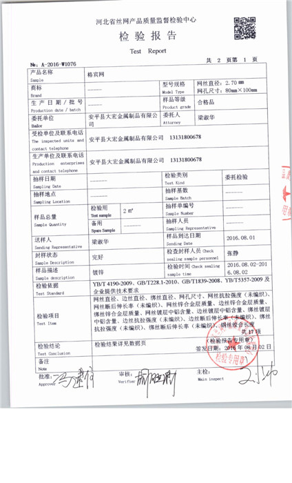 当前所在位置: 首页 » 产品中心 » 安平县大宏金属制品有限公司