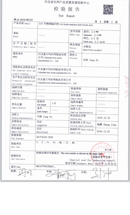 当前所在位置: 首页 » 产品中心 » 河北喜尔玛丝网制造有限公司