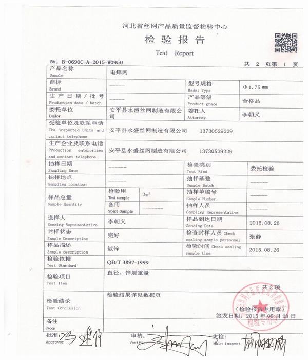 当前所在位置: 首页 » 产品中心 » 安平县永盛丝网制造有限公司