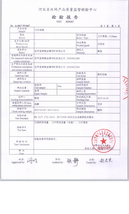 当前所在位置: 首页 » 产品中心 » 安平县荣泰金属网栏有限公司