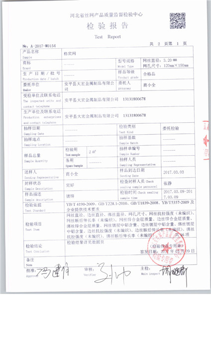 当前所在位置: 首页 » 产品中心 » 安平县大宏金属制品有限公司