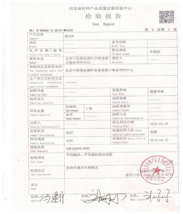 主办单位:河北省丝网产品安平县综合检验检测中心