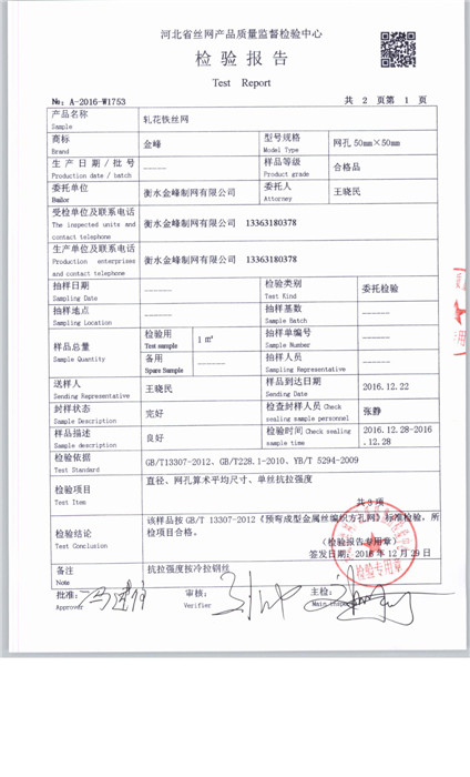 当前所在位置: 首页 » 产品中心 » 衡水金峰制网有限公司
