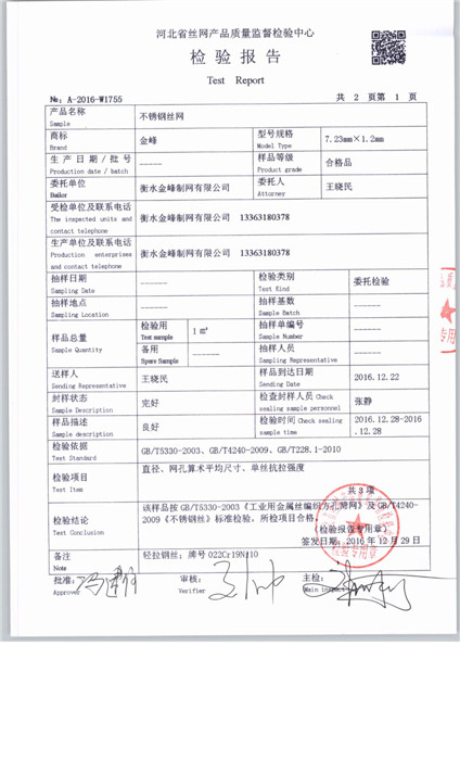 当前所在位置: 首页 » 产品中心 » 衡水金峰制网有限公司